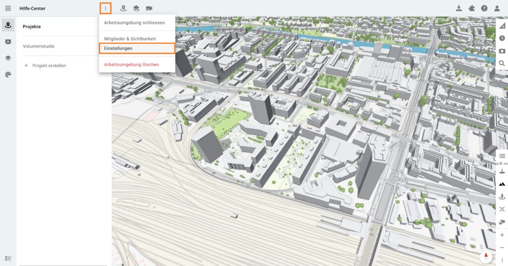 Bearbeite allgemeine Informationen in den Einstellungen deiner Arbeitsumgebung. Öffne dazu die gewünschte Arbeitsumgebung und klicke auf das Kontextmenü und wähle Einstellungen.