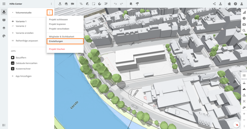 Um den Projektreferenzpunkt für dein Projekt zu definieren, gehe in die Projekteinstellungen und klicke auf Projektreferenzpunkt.