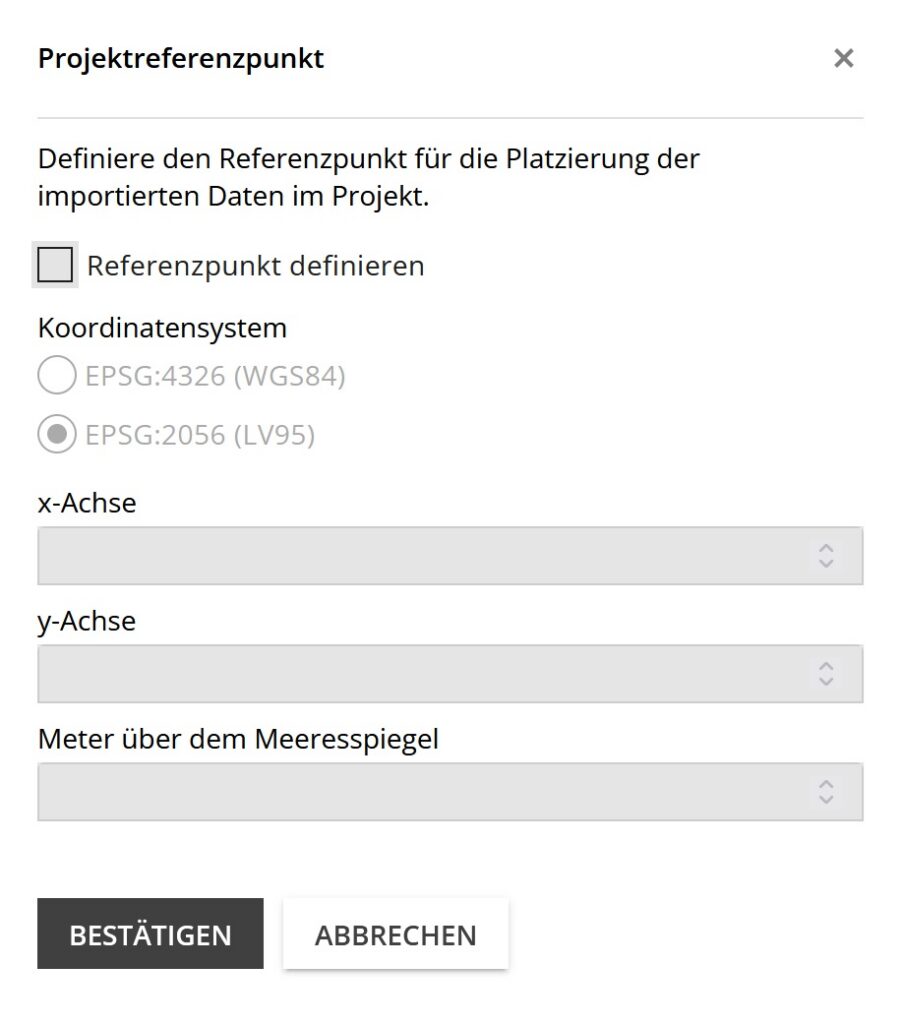 Der Projektreferenzpunkt kann in den Projekteinstellungen definiert werden und wird als Bezugspunkt für die Platzierung der importierten Daten in allen Varianten des Projektes verwendet.
