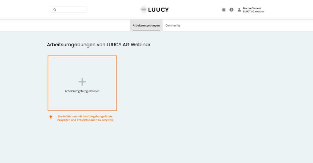 Eine Arbeitsumgebung enthält Projekte und Präsentationen. Zudem können in einer Arbeitsumgebung verschiedene Karten, Terrains und andere Umgebungsdaten enthalten sein oder selber hochgeladen werden.