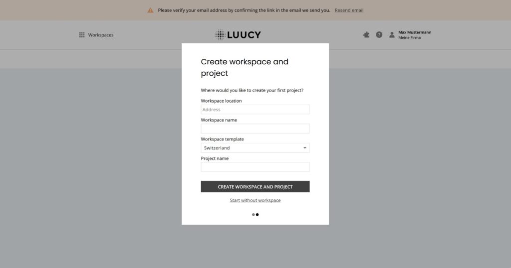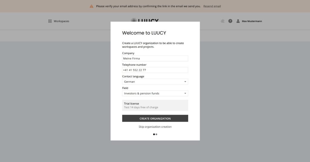 Erstelle deine Organisation in LUUCY, um Arbeitsumgebungen, Projekte und Präsentationen erstellen oder deine eigenen Daten hochzuladen zu können.