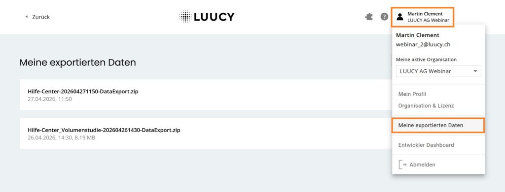 Wähle die gewünschten Datensätze, welche du exportieren möchtest und klicke anschliessend auf Exportieren.