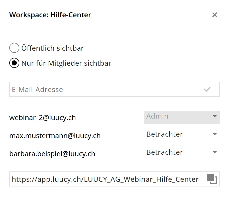 - Nur für Mitglieder sichtbar, heisst die Arbeitsumgebung ist für die hinzugefügten Mitglieder zugänglich