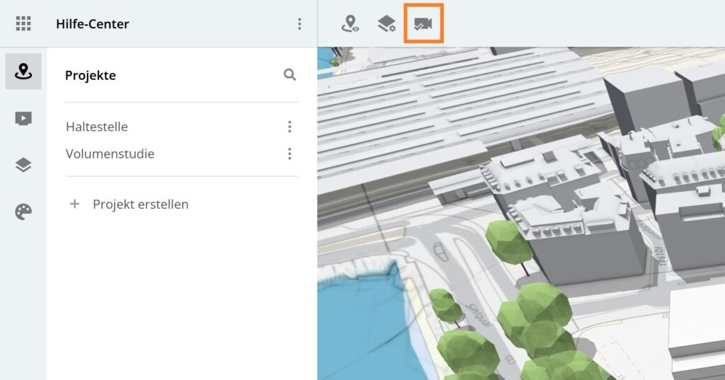 Die neue Ansicht (mit den eingeblendeten Projekten und Umgebungsdaten) kann für die Arbeitsumgebung oder auch einzelne Projekte gespeichert werden. Nutze dazu das Tool Ansicht speichern in der oberen Toolbar. Je nachdem ob di dich innerhalb eines Projekt befindest oder in der Arbeitsumgebung (ohne ein geöffnetes Projekt) wird die Ansicht entweder für das Projekt, oder die Arbeitsumgebung gespeichert.